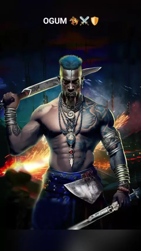 OGUM 🏇⚔️🛡️ . Ogum, no sincretismo religioso conhecido como São Jorge, São Sebastião, é o orixá guerreiro. É nosso protetor na guerra do dia-a-dia para defender o pão, nos guardar das violências e dos ataques. . É senhor da metalurgia, tendo domínio sobre o ferro e o aço e todas as ferramentas feitas com esses materiais, como a lança, o martelo, a faca, a ferradura e a enxada. . Ogunhê. 🙏🙇 Ogunhê, Ogum. 🏇⚔️🛡️ . #ogum #ogunhe #umbanda #saojorge #ogumguerreiro