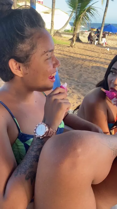AS DUAS SE LAMBUSANDO NA PRAIA CHUPANDO O PICOLÉ KKK #telekwai #explora #Praia #memes #fy @Kiinha_souzaa(O150000135869434) @Idanielreis(O150000157146798)
