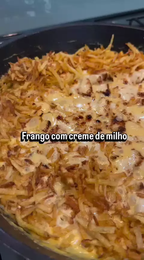 Frango com creme de milho : simples, rápido e absurdamente delicioso! Parece um fricassê, mas é ainda mais fácil, tá?! Refogue o frango em cubos no azeite com sal, alho e seus temperos preferidos até ficar bem douradinho. Enquanto isso, bata no liquidificador: 1 lata de milho 1 lata (ou caixinha) de creme de leite 1 colher sopa bem cheia (ou mais, se quiser!) de requeijão e um pouquinho de sal ou tempero a gosto. Depois é só misturar esse creme ao frango, colocar bastante queijo mussarela por