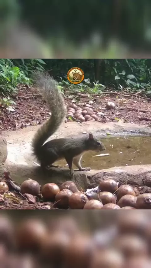 🐿️ O esquilo caxinguelê fazendo um banquete de macaúba no bebedouro da mata! #Natureza #animais