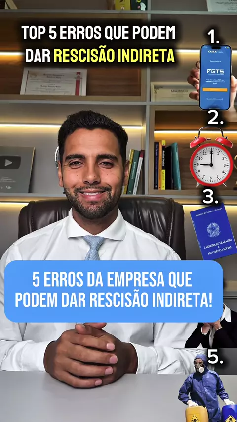 5 erros da empresa que podem dar rescisão indireta! #rescisaoindireta #direitodotrabalho #advogadotrabalhista #clt #trabalhador