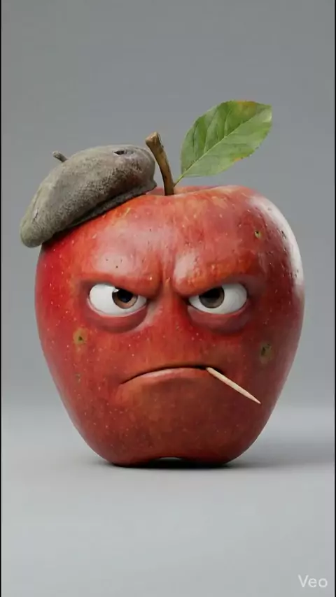 Maçã raivosa encara a câmera com expressão furiosa, vibrando energia e atitude intensa! 🍎🔥 #macaraivosa #frutas3D #viral #kawai #animacao