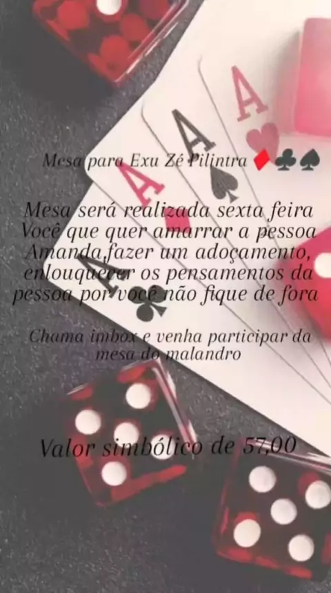 Amanhã mesa coletiva pra Exu Zé Pelintra por apenas R$ 57,00 Reais. chama no WhatsApp (51)986319368.