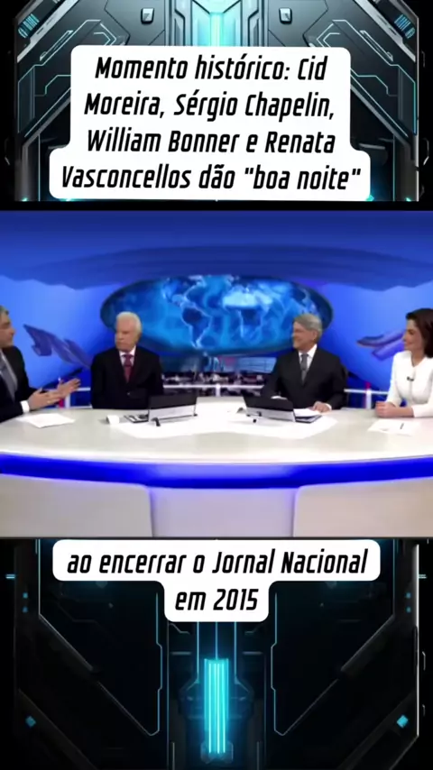 Momento histórico: Cid Moreira, Sérgio Chapelin, William Bonner e Renata Vasconcellos dão "boa noite" ao encerrar o Jornal Nacional em 2015. #noticias #cidmoreira #jornalismo #viral #fy