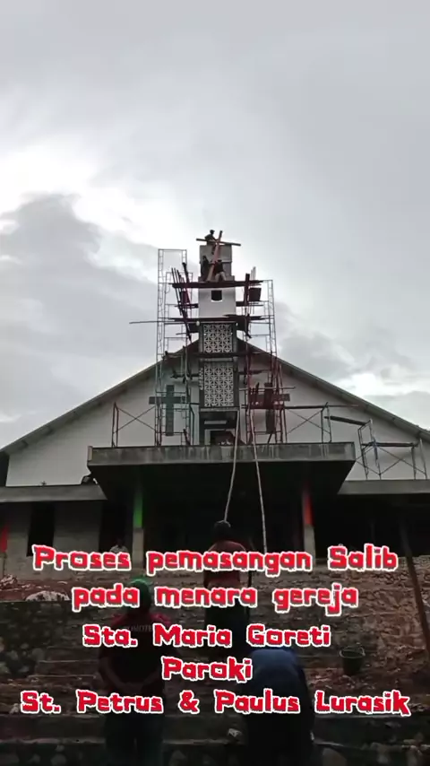 proses pemasangan Salib pada menara Gereja Lurasik#lurasik#katolik#Andreassofiandi#gereja#pembangunangereja