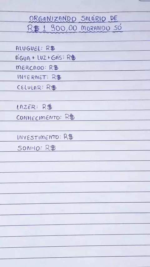 ORGANIZANDO UM SALÁRIO 1.900,00 PARA QUEM MORA SOZINHO.