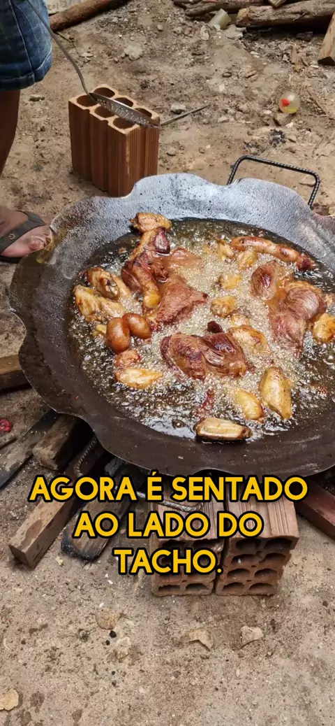 Agora é sentado ao lado do tacho.