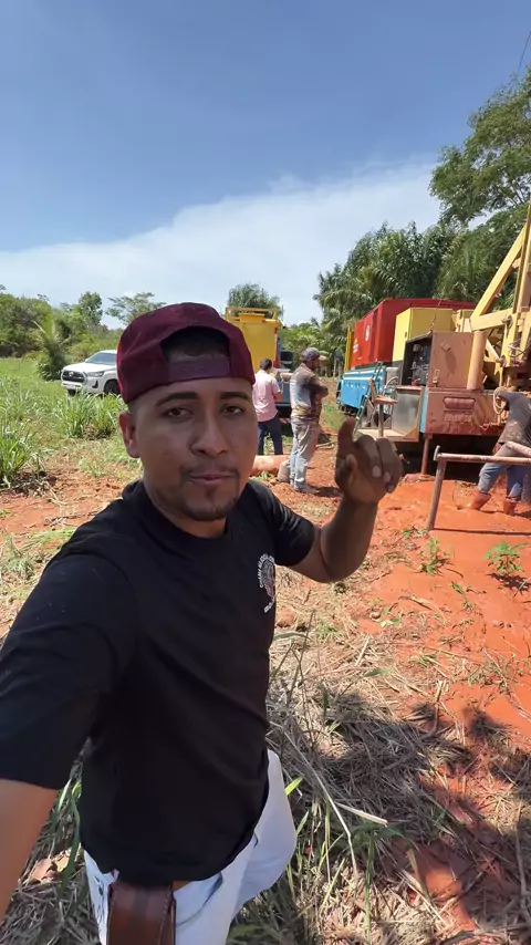 Escavação do poço artesiano na chácara.