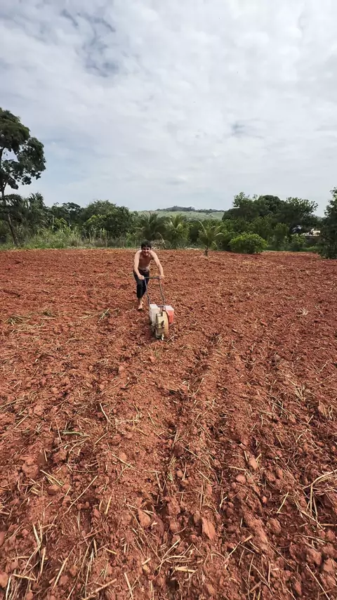 Elias plantando milho sem camisa no sol quente. #chácara #plantação #milho #resenha #kwaiviral
