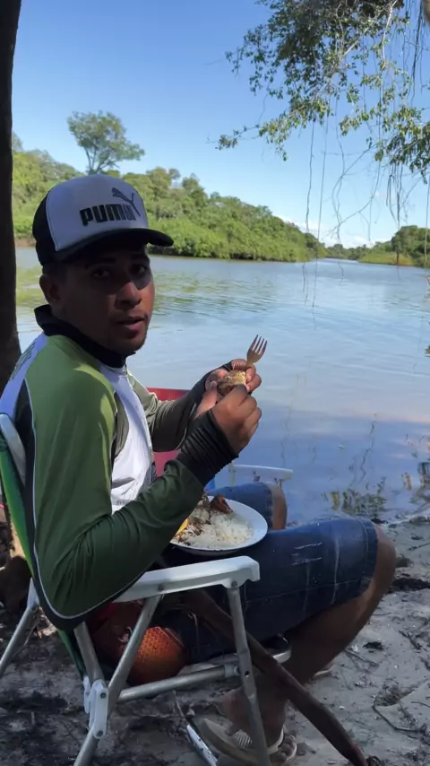 Peixe assado na beira do riacho . #Comida #Peixe #Lazer #Família #KwaiViral