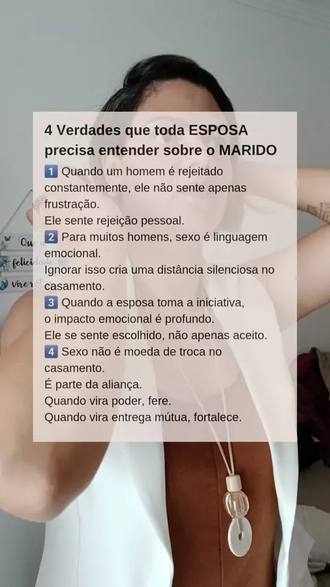 4 verdades que toda esposa precisa ouvir sobre o coração de um homem. Muitas mulheres acreditam que a maior necessidade de um homem é apenas sexo. Mas, na verdade, o que muitos homens procuram é conexão, pertencimento e sentir que ainda são desejados dentro do próprio casamento. Quando a intimidade vira rejeição, comparação ou moeda de troca, algo silencioso começa a morrer entre o casal.