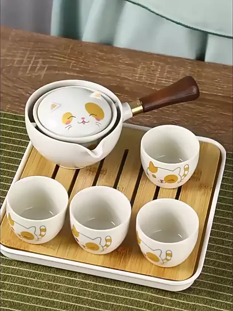 Confira Conjunto De Bule De Chá Kung Fu SUNDANCE 5/7 Unidades , Com Saco E Bandeja De 360 ° Giratório Lucky Cat , Estilo Japonês com 46% de desconto! Comente EU QUERO ou acesse o link da bio 🤩 #achadinhos #viral #cha #teatime #cozinha