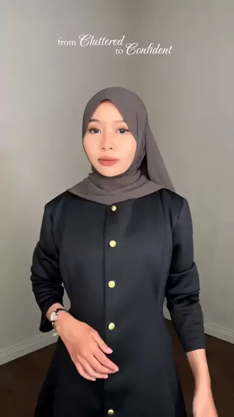 From cluttered to confident✨ On model: Flou Chiffon - Deep Ash #chiffon #cleanlook #tutorialpashmina #tutorialhijabsimple #tutorialpashminaceruty