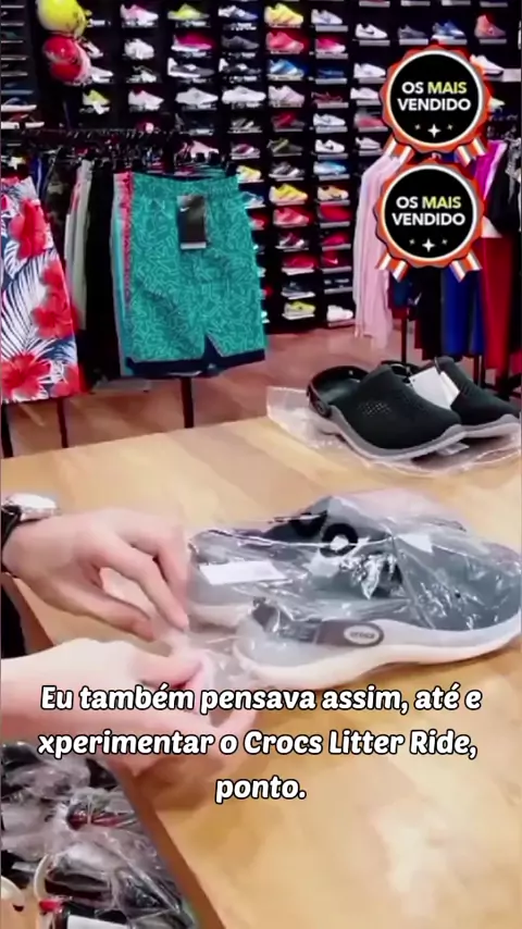 Por que continuar sofrendo com chinelos que escorregam na praia? #CrocsLiteRide #ChinelosConfortaveis #SapatosAntiderrapantes #EstiloEConforto #PraiaSemPreocupacao