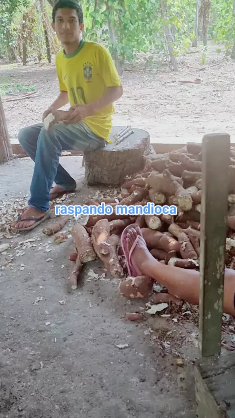 minha vó com meu avô e primo raspando mandioca aqui no interior #viraliza #naturaleza #amonatureza