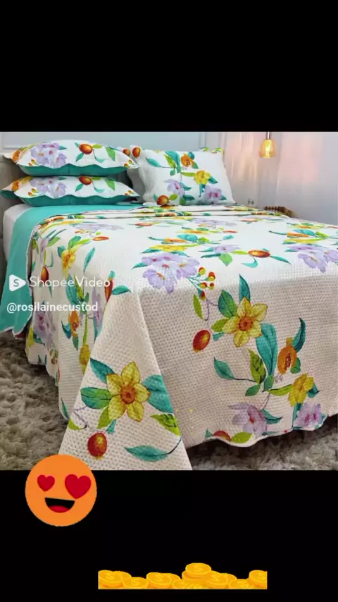 Kit Cobre Leito Colcha Casal 3 Peças Estampada Florida Matelado Dupla Face Percal Cama Box #camaposta #SHOPEE #fy #quarto #decoraçao
