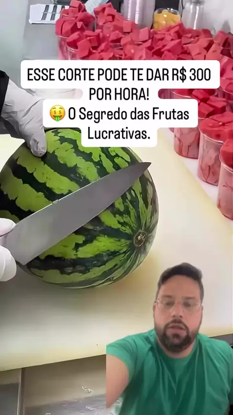 Pare de desperdiçar tempo e lucro! ✋ Essa técnica profissional transforma uma melancia comum em porções prontas e de alto valor, perfeitas para vender no delivery, no escritório ou na praia. É a prova de que a simplicidade gera escala. Um processo de produção inteligente para quem quer faturar alto com um negócio de baixo investimento. ​Qual produto simples você acha que pode ser transformado em uma máquina de vendas? Comente sua ideia! . . . ​#RendaExtra ​#IdeiasDeNegócios ​#Empreendedorismo ​