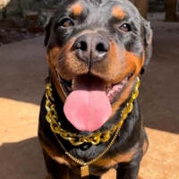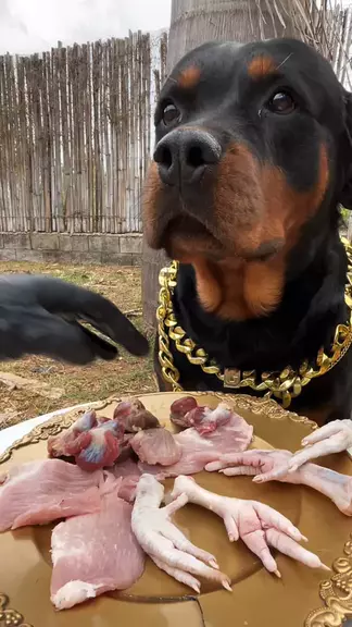 Sou um Rottweiler comedor de carne crua. Meu estilo é próprio, sou um cachorro gângster.