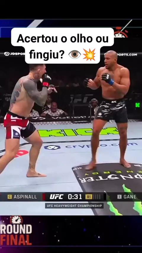 Gane ficou furioso e partiu pra cima! 😤 Aspinall estava encurralado, mas acabou desistindo da luta após acusar um soco ilegal no olho! 👁️ Confusão total no octógono! 💥 #UFC #MMA #LutaPolêmica #FightNight #AspinallVsGane