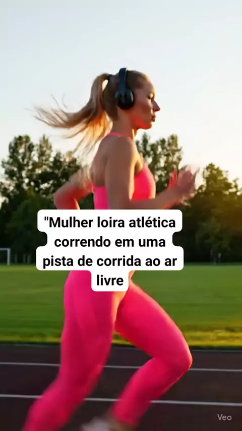 "Mulher loira atlética correndo em uma pista de corrida ao ar livre