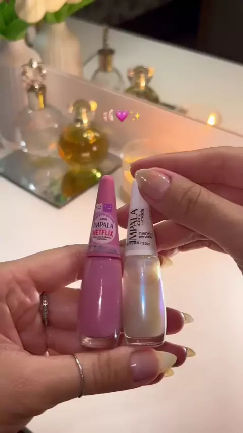 Usariam essa misturinha? Usei os esmaltes da @ Ama um k-drama + Neném perolado Se gostou já salva e compartilha! #unhas #impala #impalanetflix #nails #esmalte
