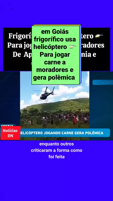 #KwaiNoticia #viraliza em Goiás frigorífico usa helicóptero para jogar carne a moradores e gera polêmica