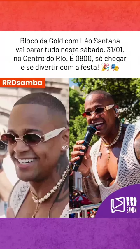 Vai perder o @blocodagoldoficial com @leosantana? É neste sábado, 31/01, concentração às 7h e hora do bloco às 8h, no Circuito Preta Gil. Vá de metrô e desça na estação Carioca. Bora? 🔥💜 #rrdsamba #leosantana #carnaval #samba #pagode