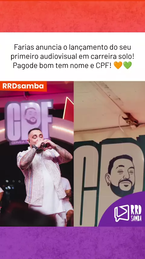 Vem aí o "CPF" (Cerveja, Pagode e Farias), primeiro audiovisual solo do Farias. 2026 é dele, viu? 😍👏 #rrdsamba #farias #samba #pagode