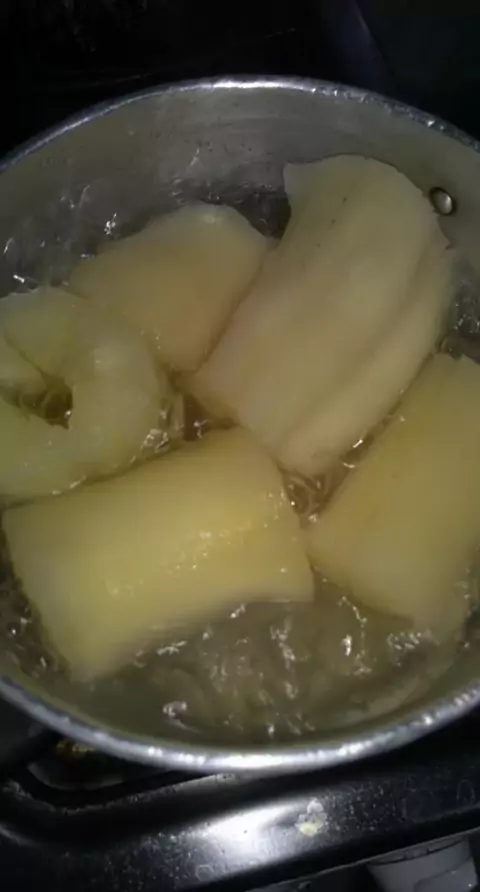 Macaxeira, sal e tempero à gosto e três colheres de farinha de trigo. #Apoioajovens