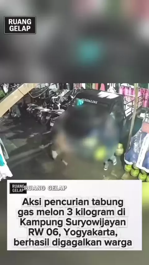 Aksi pencurian tabung gas melon 3 kilogram di Kampung Suryowijayan RW 06, Yogyakarta, berhasil digagalkan warga pada Minggu dini hari, 22 Februari 2026. Peristiwa terjadi sekitar pukul 01.50 WIB. Seorang pria yang diduga hendak mencuri tabung gas terekam kamera CCTV dengan gerak-gerik mencurigakan di area parkir, tepat di dekat kendaraan bak terbuka. Dalam rekaman tersebut, pelaku terlihat berusaha mengambil atau membongkar tabung gas tanpa menyadari bahwa aksinya sudah dipantau warga dari jara...