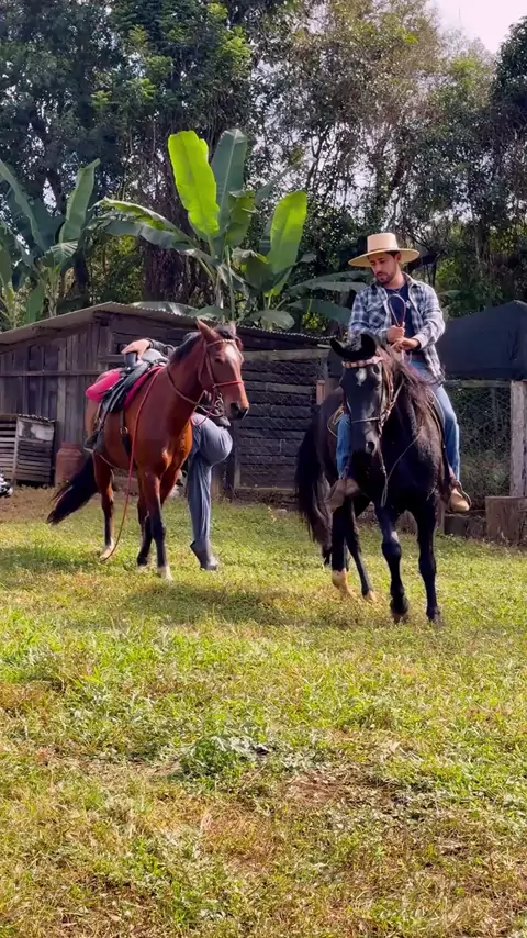Fábio e Marcos Vinícios andando a cavalo e a égua Atena correu e largou o Vinícios pra trás kkkkkk vlog da cavalgada de hoje #vlog #cavalo #cavalos #humor #fazenda @A RUIVA DA ROÇA(O150000158265228)