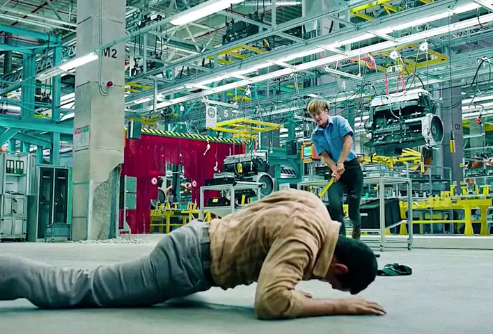 Seorang wanita menyerang pria yang sudah tersungkur di tanah, tapi yang terjadi... #film #aksi #fiksi #terminator #rekomendasi
