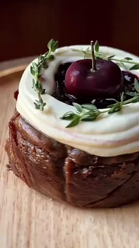 ♡︎ᴍɪɴɪ ʙʟᴀᴄᴋ ꜰᴏʀᴇsᴛ ʙᴀsǫᴜᴇ ᴄʜᴇᴇsᴇᴄᴀᴋᴇ♡︎ ɪɴɢʀᴇᴅɪᴇɴᴛs batter - 150g cream cheese - 50g sugar - 60ml heavy cream - 1 egg - 3g all-purpose flour - 3g cocoa powder - pinch of salt - 1 tsp vanilla extract cherry compote - 100g cherry - 25g sugar - pinch of salt - 1 tbsp cornstarch slurry vanilla cream - 100ml heavy cream - 1 tsp vanilla extract - pinch of salt - 25g sugar garnish - cherries - thyme recipe adapted from catherine zhang #fyp #foryoupage #fypシ #bolo #Receita