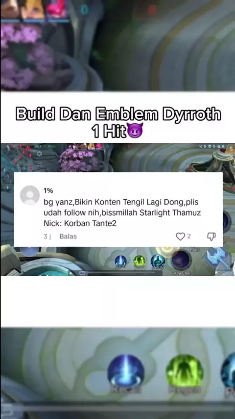 Build Dan Emblem Dyrroth 1 Hit Langsung Turu👆😈 #mentahanvideo #builddanemblemdyrroth #mobilelegends