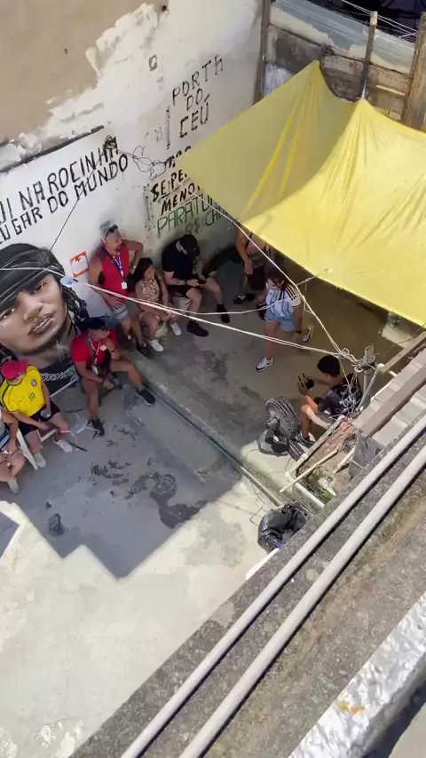 Turistas fazem fila para gravar vĂ­deo em cima de laje na favela da Rocinha (RJ). #Carnaval #rj #drone