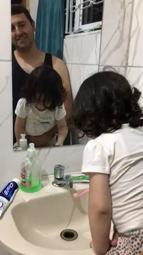 Noemi escovando os dentes pela primeira vez