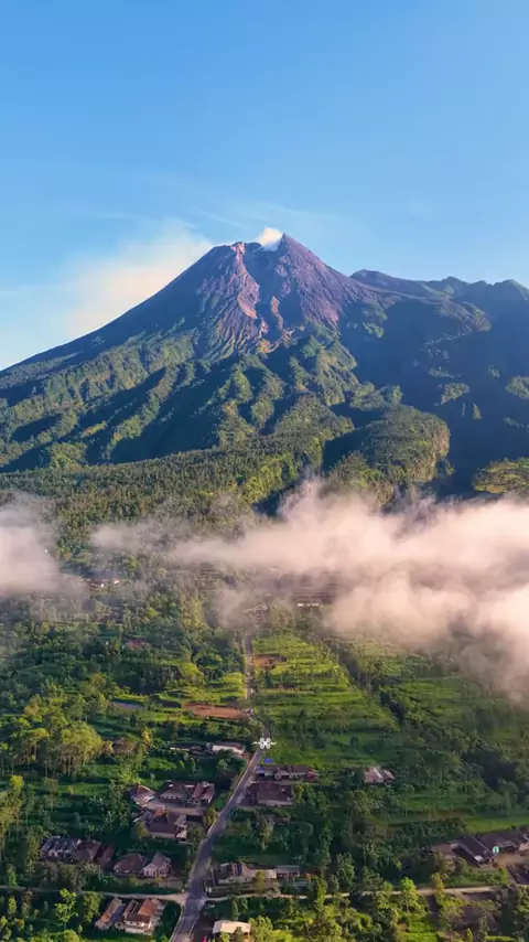 Menembus awan, di bawah tatapan Merapi ⛰️☁️ *tonton sampai habis 💦 🔘 🔘 🔘 📍🌐 Yogyakarta . . . #aerial #aerialview #merapi #dji #mountain