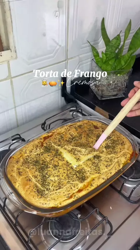Torta de frango cremosa Massa↓ 3 ovos 1 xícara de óleo 2 xícaras de leite 2 xícaras e meia de trigo 1 pitada de sal 3 fatias de muçarela 1 colher de sopa de fermento Recheio a gosto! • Forno 180 graus! #receitasimples #_receitas #receitafacil #_receitas #tortadefrango