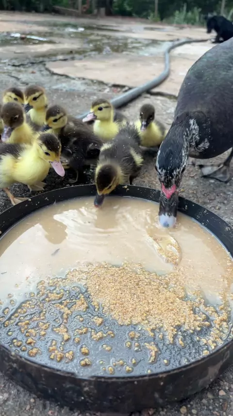 Alimentando os patinhos 🐥🐥😍