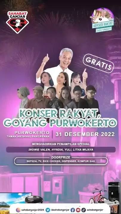 Dompet aman, seru maksimal! Pesta Rakyat Ganjar-Mahfud Kendal pada Selasa 26 Desember 2023. Pesta Rakyat ini GRATIS buat semuanya! Dewi Persik, Abah Lala, dan NDX AKA siap bikin malammu tak terlupakan! 🎶 #SahabatGanjar #GanjarPranowo #Ganjar #GenerasiGotongRoyong