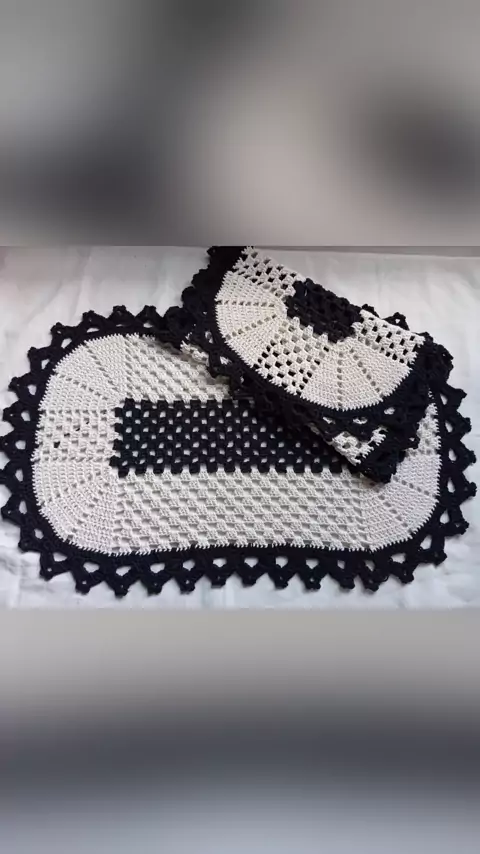 mais uma produção desse par de tapetes em crochê nas cores cru e preto. par perfeito para qualquer ambiente #croche #feitoamão #tapetedecroche
