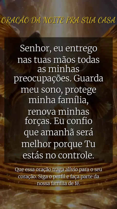 🌟 ORAÇÃO DA NOITE PARA ANSIEDADE: Descanse, Deus está no controle 🕊️ Oração de proteção baseada no Salmo 91! Pai, eu renuncio ao espírito de desespero que tenta me fazer tomar decisões precipitadas. Nenhuma praga chegará à minha tenda. O que está travado hoje será testemunho amanhã! Amém! 🙏🛡️🔥 #vidacristã #jesuscristo #curaparaansiedade #diaabencoado #oraçãodamanhã