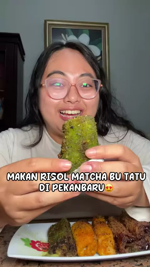 Risol matcha bu tatu di Pekanbaru😳 HAHA bukan ya ini cuma ala ala bu tatu krn ngiler jd pengenan makan risol matcha #mukbang #