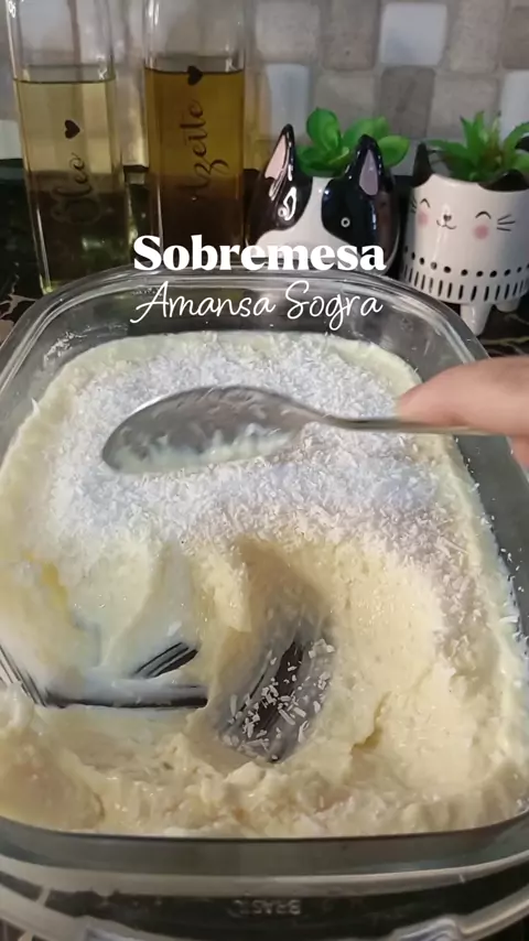 Sobremesa Amansa Sogra 😋 ingredientes: 1 Leite condensado 2 creme de leite 1 suco Tang de abacaxi 1 xícara de leite em pó 1 xícara de coco ralado #sobremesa♥️ #doce