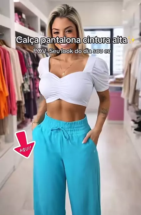 Calça pantalona feminina cintura alta
