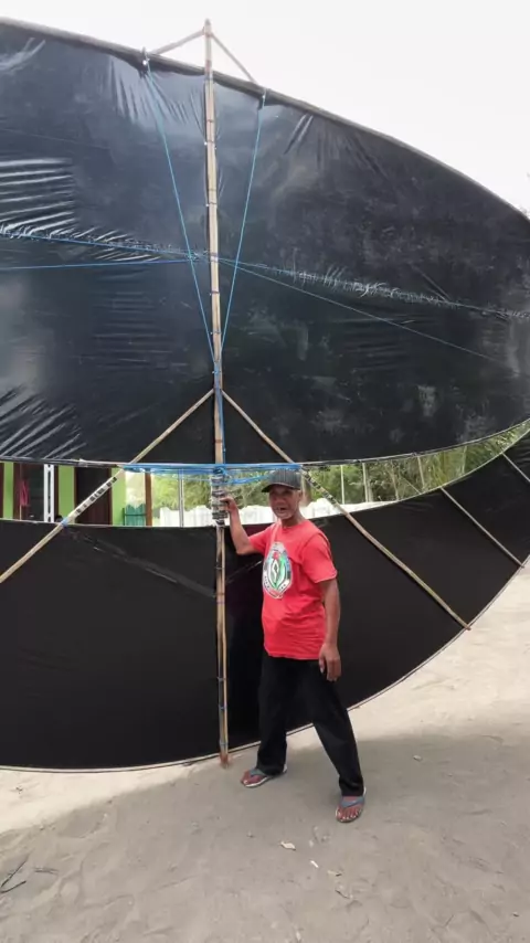 Uji coba terbangin layangan raksasa 10 mtr joki di bikin panik#layangan #layanganraksasa #bolang #food #