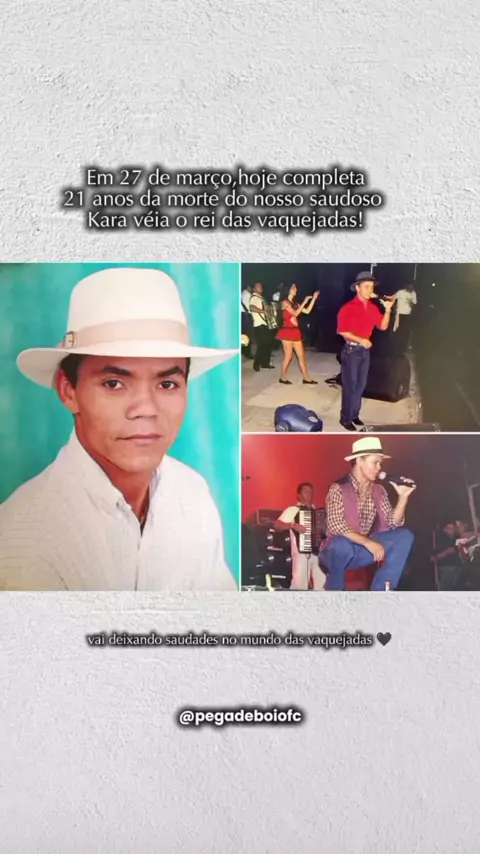 Hoje 27 de março de 2025 fazem 21 anos que o mundo das vaquejadas perdeu esse ícone da música, Kara veia se foi quando estava no auge da sua fama, hoje seu nome é lembrado por todo nordeste. Fica aqui a homenagem para esse grande incone das vaquejadas .😓🖤🥀 #homagemakaraveia #27demarço #ReiDasVaquejadas #karaveia