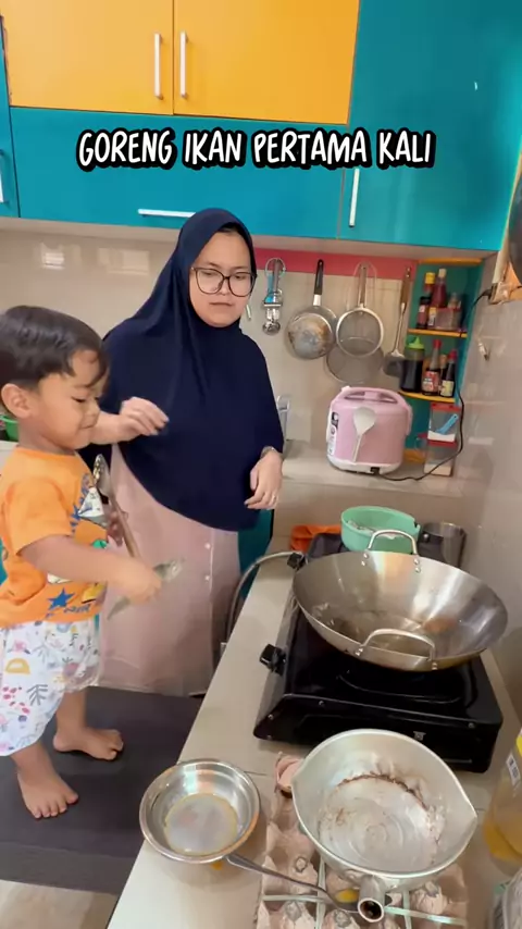 Ajarin abiya masak ikan dulu ya pengalaman abiya pertama kali 😂 #