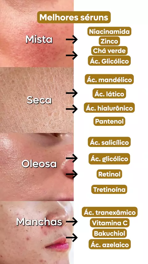 Você já sabe quais ativos funcionam melhor pro seu tipo de pele? Seja ela oleosa, seca, mista ou com tendência a manchas, entender o que usar faz toda a diferença no resultado! No vídeo, mostrei algumas sugestões pra pele mista, seca, oleosa e com manchas. Salva para não esquecer depois! Qual o seu tipo de pele? #cuidadoscomapele #skincare #rotinadeskincare #peleoleosa #peleseca