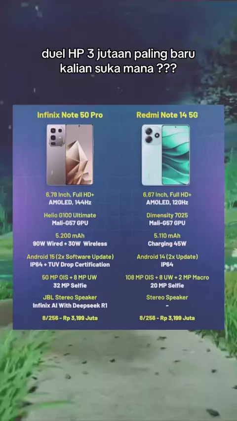 Duel HP 3jutaan paling baru Infinix punya metal Frame harganya sama persis dengan Redmi note 14 5G Gimana kalian pilih mana ?#rekomendasi#hp#baru#infinix#redmi#infinixnote50#redminote14#kamera#camera#gaming#tech#techtok#d3gadget#wagmicreative